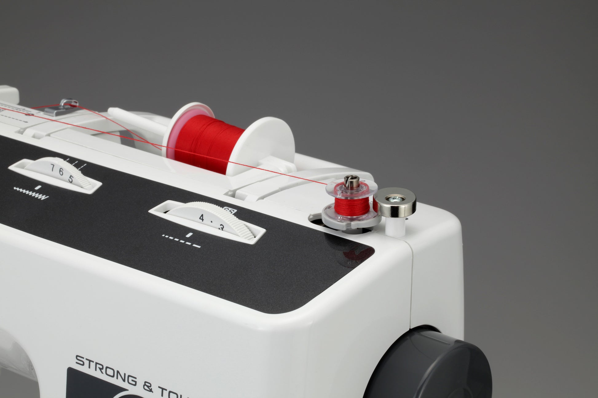 Alle Brothers symaskiner kommer med det smarte drop-in spolesystem, som ikke bare gør det nemt at skifte spoler, men som ligeledes kører gnidningsfrit og lydløst (selv ved høj hastighed). Du lægger ganske enkelt bare spolen vandret ned i maskinen, hvilket gør det super enkelt at tråde maskinen. Med det gennemsigtige låg, så er du sikret at det altid er den rigtige farve tråd som ligger i maskinen.