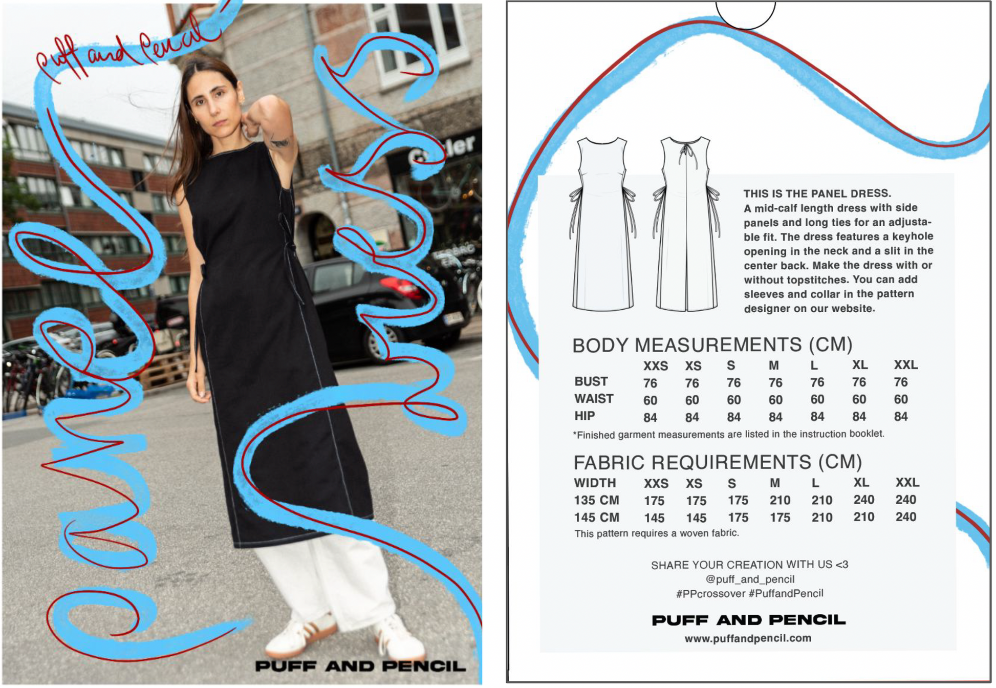 PANEL kjolen passer sammen med alle Puff and Pencil’s ærmer til bluser og kjoler samt alle Puff and Pencil’s kraver med rund hals.