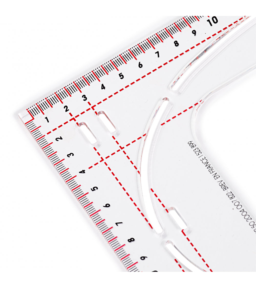 Transparent skræddervinkel på 60,5 × 24,5 cm – ideel til præcise målinger og mønsterkonstruktion. Perfekt værktøj til både hobby- og professionelt brug.