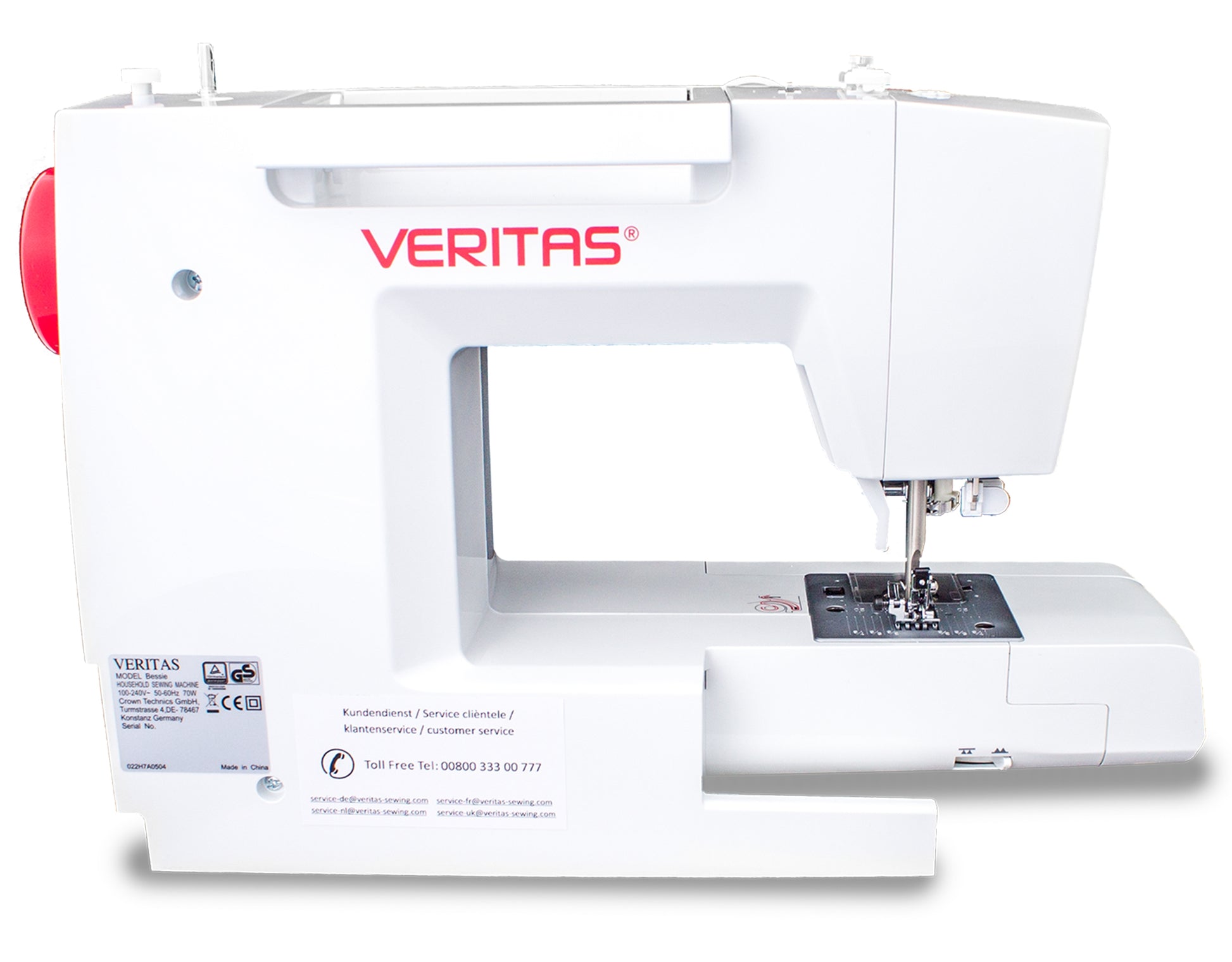 Hos VERITAS bestræber vi os for at producere symaskiner af høj kvalitet for at sikre kundetilfredshed. Netop derfor kan du registrere din maskine efter køb på www.veritas-sewing.com, og opnå 3 års ekstra garanti uden ekstra omkostninger.