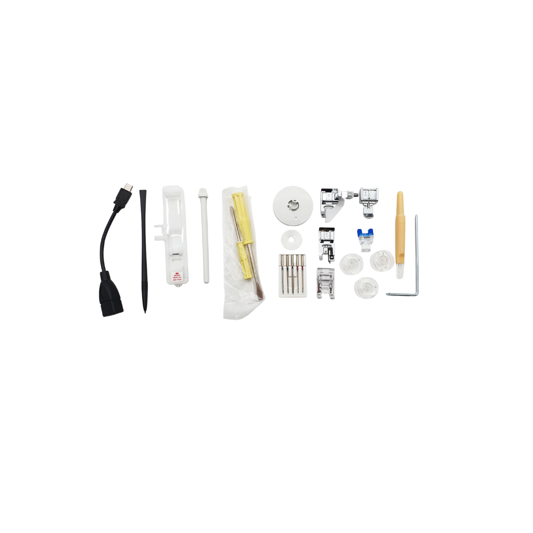Via symaskinens touchskærm har du betjeningsvejledningen og mange gode syinstruktioner direkte ved hånden. Takket være start-/stop knappen kan maskinen også betjenes manuelt. Maskinen har ligeledes hastighedskontrol, og tråden kan klippes af med et enkelt tryk på en knap.